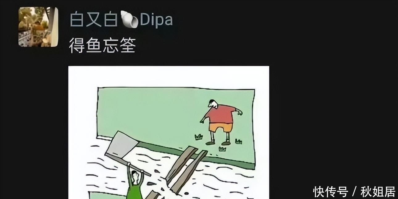 画面中只有四个字:“得鱼忘筌”,配上一幅“过河拆桥”的讽刺漫画。虽无点名道姓,但指向之明确,令人不寒而栗。